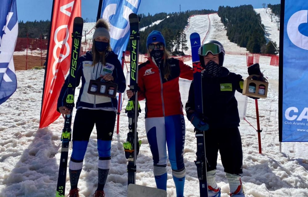De la seva banda, Íria Medina ha acabat tercera en la prova que tancava la competició i també ha millorat punts FIS. Medina ha fet dues mànegues similars, tercera a les dues mànegues i, finalment, també tercera amb un temps final de 2.05.78, a 1.00 de la guanyadora, l’espanyola Mirentxu Miquel, que s’ha imposat amb 2.04.78. L’andorrana tancava la primera mànega amb +0.34, mentre que a la segona feia +0.73.