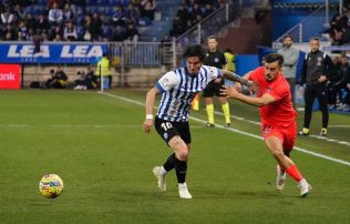 I no seria l’únic cop. Quatre minuts després, l’Alabès ha enllaçat una ràpida contra després d’una possessió llarga dels tricolors. La passada llarga ha arribat a Miguel que ha intentat sorprendre Ratti al pal curt. Novament, l’argentí ha pogut refusar a córner.