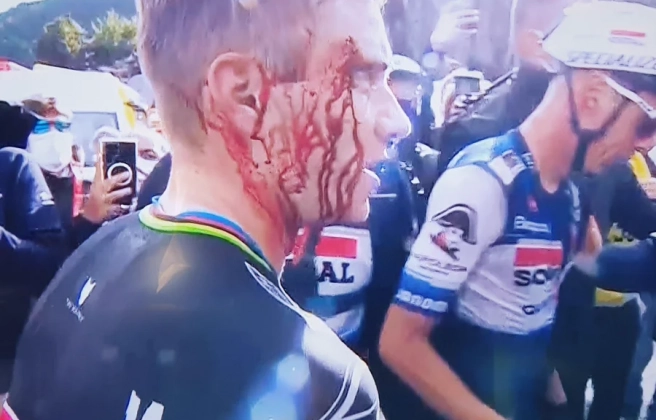 Al cim, temperatura de 10 graus, i a la baixada calçada mullada i alguns ciclistes en dificultats als revolts. Per conra, Caruso (Bahrain-Victorious) baixava com un llamp i només Kämna (Bora-hansgrohe) aguantava el seu ritme. Tots dos afrontaven la darrera pujada, Arinsal. amb una mica més d'un minut de diferència que podia semblar poca però Caruso i Kämna, dos vells rockers, estaven disposats a resistir com John Wayne a 'El Álamo'. Son dos corredors que es coneixen molt bé.