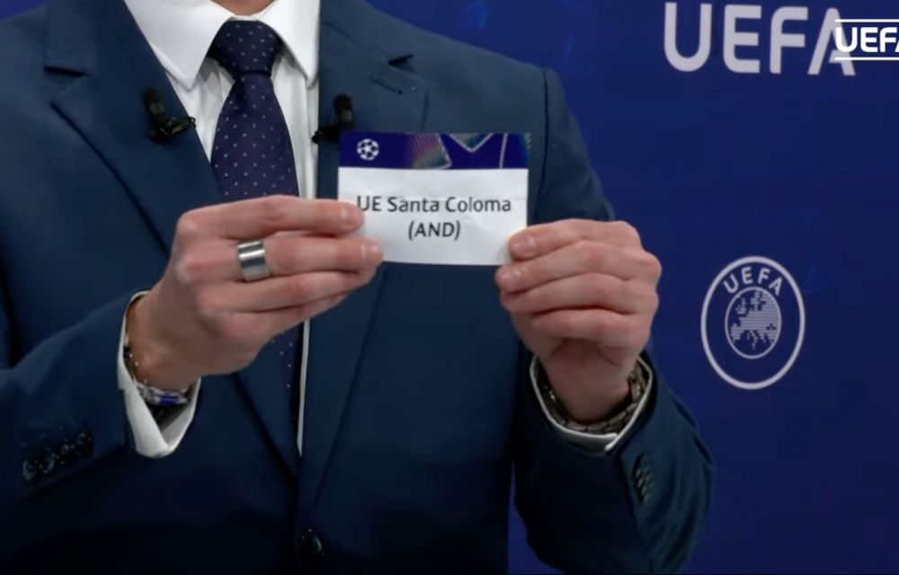 Els representants de la UEFA, Tobias Hedstuck i Tom Barlow, han estat els encarregats de treure les boles del primer grup. L’últim equip en sortir ha estat el representant d’Andorra, la UE Santa Coloma, que s’enfrontarà al cap de sèrie FC Ballkani, campió de la lliga kosovar i que els dos últims anys ha participat en la fase de grups de la Conference. Serà en una eliminatòria a doble partit, i, tot i que s’ha sortejat al revés, si res canvia, la UE jugarà l’anada a l’Estadi Nacional (9 de juliol) per no coincidir amb l’Inter i l’Atlètic d’Escaldes, mentre que la tornada tindrà lloc el 16 o el 17 de juliol. Només falta que la UEFA ho aprovi, ja que la FAF n’està al corrent.