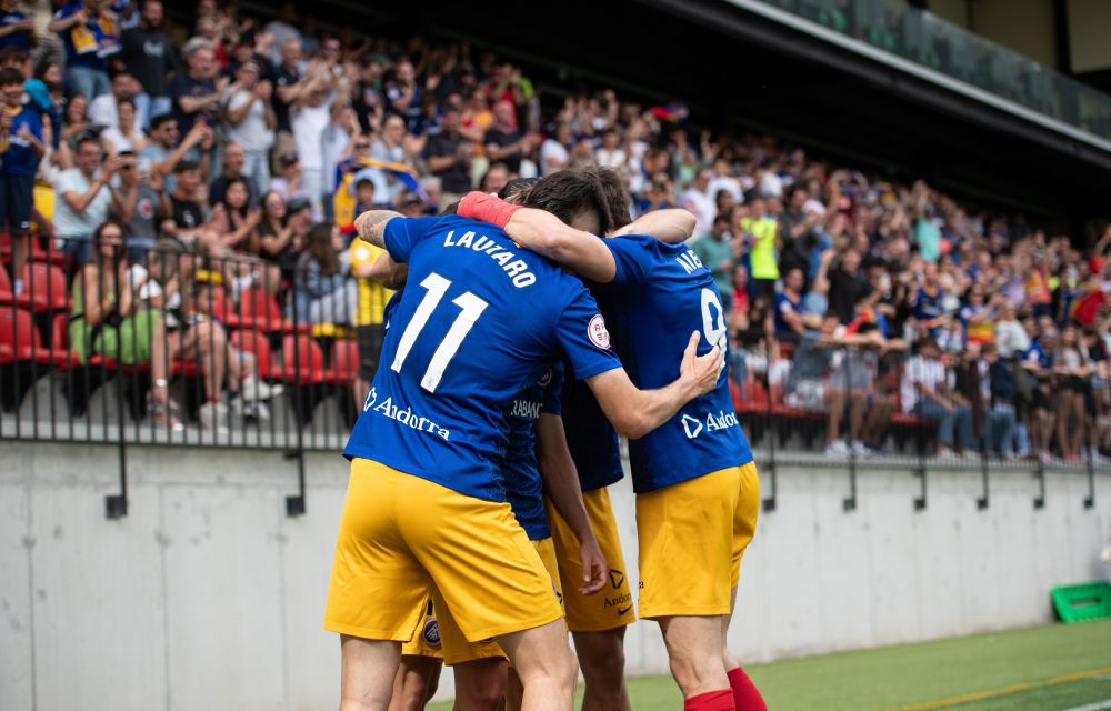 FC Andorra (2): Ratti; Casadesús (Clemente, 71’), Bomba (Luismi, 81’), Molina, Martí Vilà (Iván Rodríguez, 58’); Erik Morán (Trigueros, 71’), Álvaro Peña (Villahermosa, 46’), Álvaro Martín; Cerdà, Manu Nieto i Lauti. Entrenador: ‘Beto’ Company