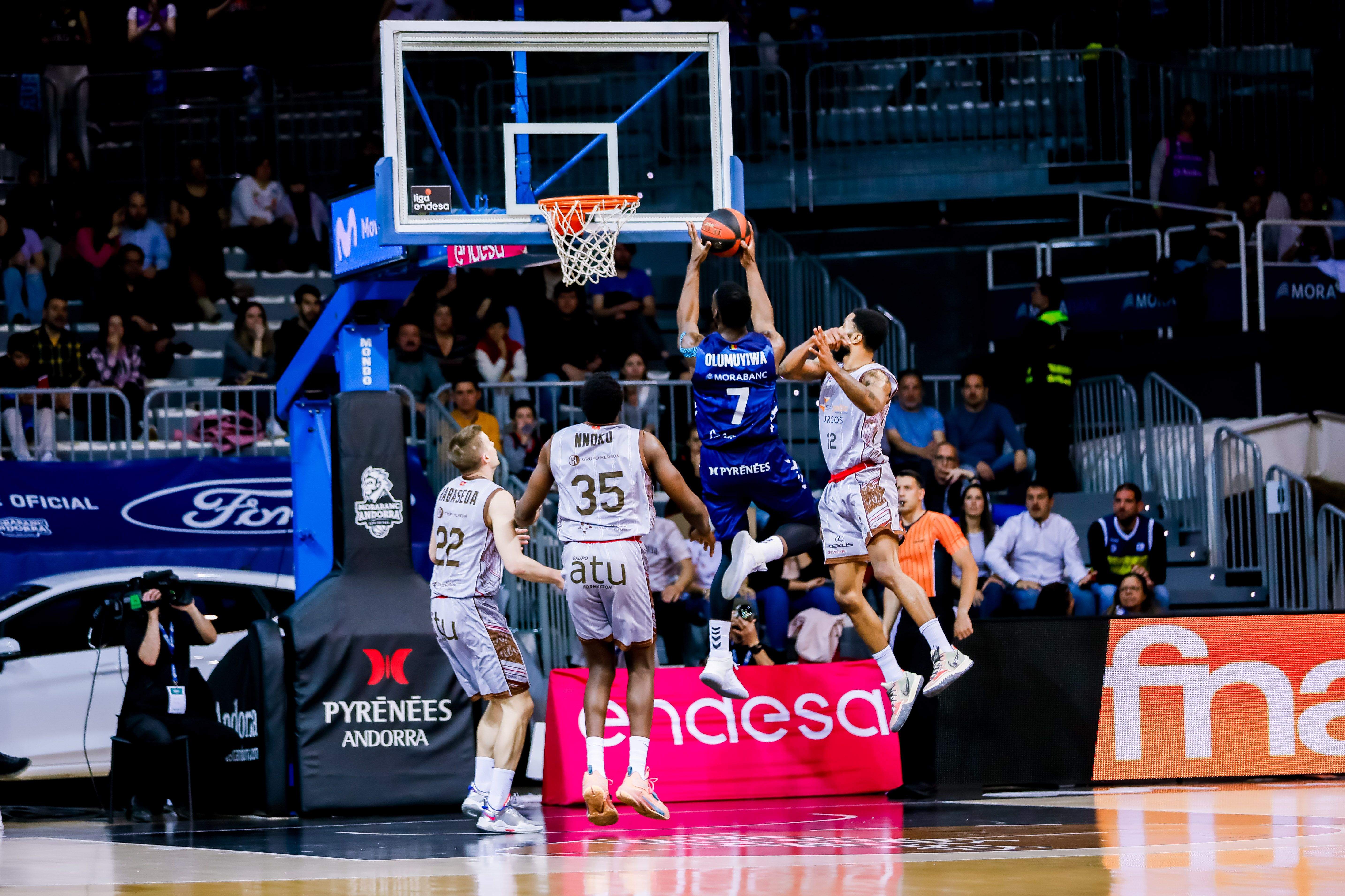 L’alegria ha durat poc, però. Codi Miller-McIntyre ha perdut la pilota abans de passar a camp contrari i Eddie fàcilment s’ha penjat de la cistella. De ben poc ha anat que el MoraBanc no torna a perdre la bimba. Miller-McIntyre ho ha salvat com ha pogut, i Tunde ha anotat plorant després d’un rebot capturat més a l’estil handbol que una altra cosa. I els àrbitres xiulant per vídeo. Perquè l’‘instant replay’ era una constant. Una vegada i una altra els col·legiats acudien al suport videogràfic.