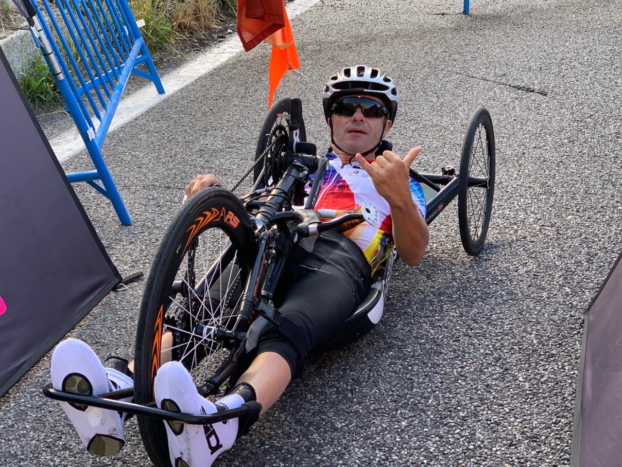 Un dels ciclistes arriba al seu destí.