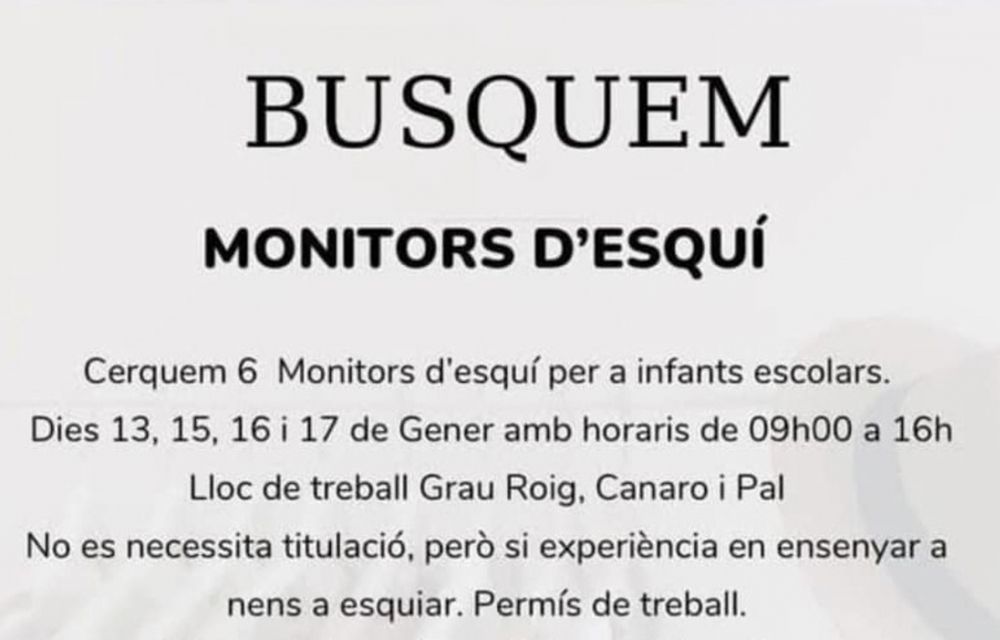 Des de l’Associació Andorrana de Monitors d’Esquí (AAME) asseguren que els canvis realitzats a l’anunci evidencien que el requeriment que es feia “no era legal tot i ser, segurament, el que els demanava el client”. Veient les reaccions, s’han afanyat a rectificar. “Ara, la qüestió serà veure si troben monitors titulats, si els contracten o tot i la rectificació, per no trobar-ne o per voluntat, contracten gent sense titulació”, manifesten les fonts, que reclamen la intervenció igualment de Treball, encara que consideren que això és més complicat que buscar una agulla en un paller.