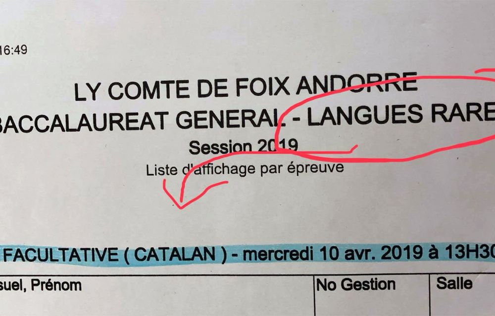 Uns formularis genèrics del centre francès sobre una assignatura lingüística no té en compte l’especificitat del Principat, on el català és l’únic idioma oficial