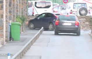 Imatge principal: captació d’Andorra Televisió. Vehicles que traslladen dos dels detinguts accedeixen a la seu judicial per la part posterior, per l’entrada a l’aparcament soterrani de l’edifici de les Columnes.