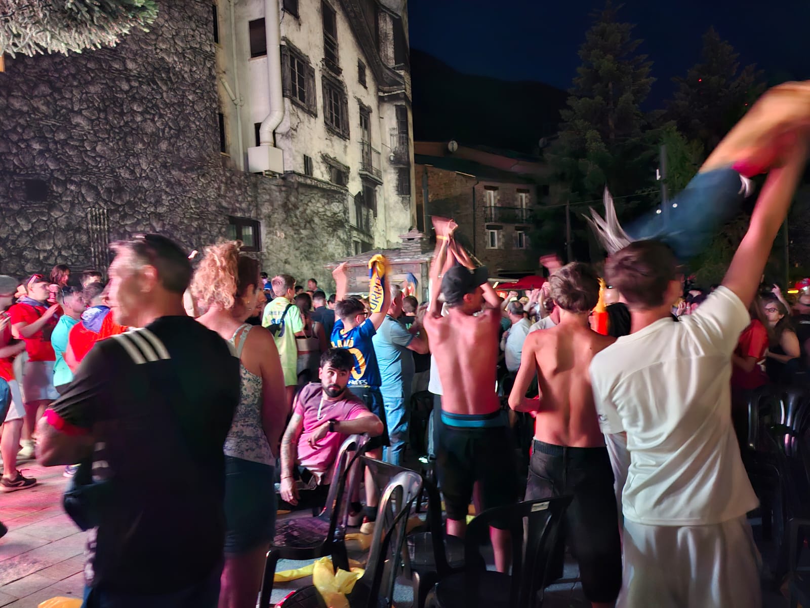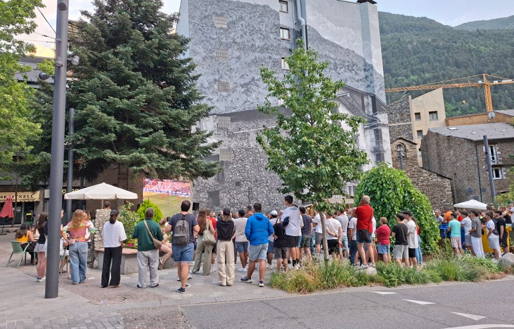 Entregats de ple a la festa del poble, les propostes d’oci a la parròquia d’Encamp s’han completat aquest dissabte al vespre amb el seguiment del partit de tornada del play-off per pujar a Segona entre l’FC Andorra i la Ponferradina. El club va apostar per muntar una pantalla gegant des d’on poder seguir el partit en comunitat i la idea ha estat tot un encert. Amb bon temps i una temperatura que acompanya, unes 200 persones s’han reunit, d’entrada, a la plaça Sant Miquel per veure el partit i fer costat, encara que sigui des de la distància, a l’equip.