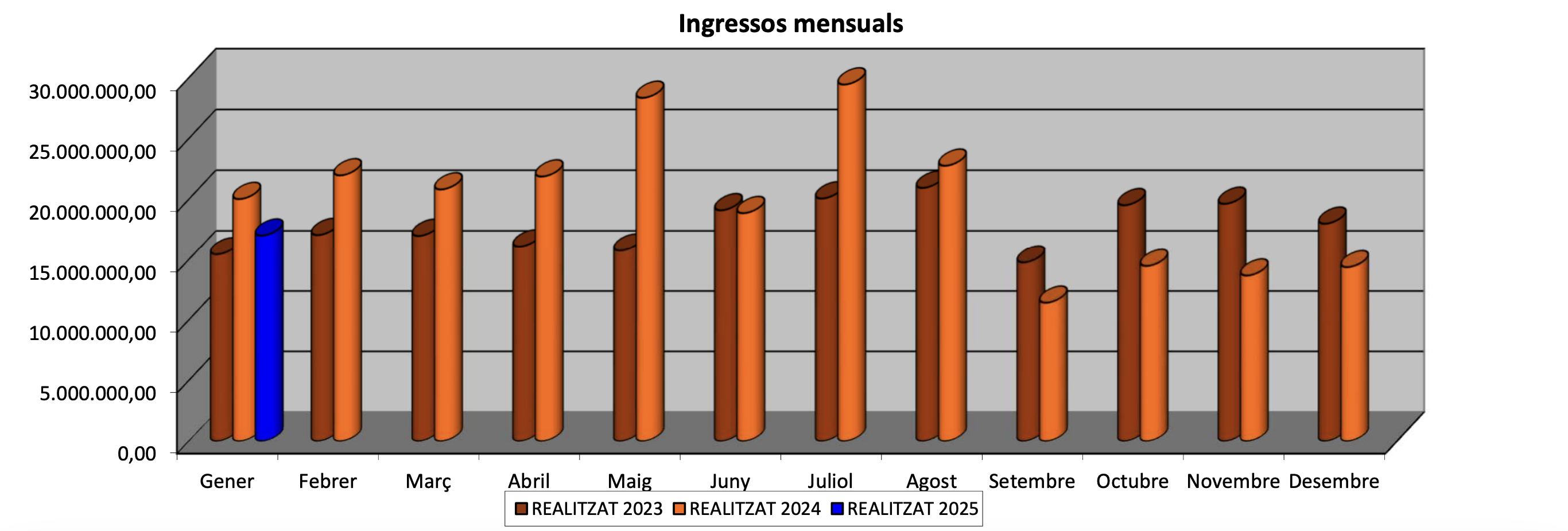 Pel que fa a les begudes, s’han assolit 799.931,72 euros. Això suposa una millora del 5,1% amb relació a la dada del 2024. Llavors, la recaptació es quedava en 761.156,46.