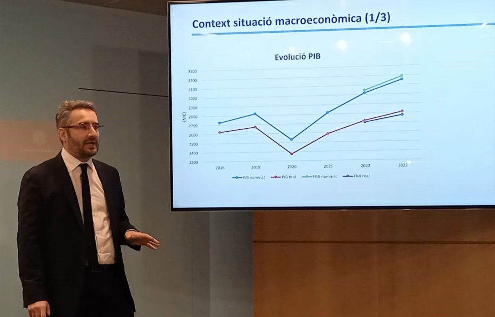 El ministre de Finances, Eric Jover, ha desgranat durant prop d’una hora i mitja els principals detalls d’un pressupost expansiu, tant en ingressos com en despeses. També, uns comptes, ha volgut destacar, que tornen a ser “ordinaris” després de tres exercicis marcats per la pandèmia. “Complim amb els requisits de la Llei de sostenibilitat de les finances públiques”, ha remarcat i, per tant, “ja no ens cal elaborar un pla d’equilibri financer”.