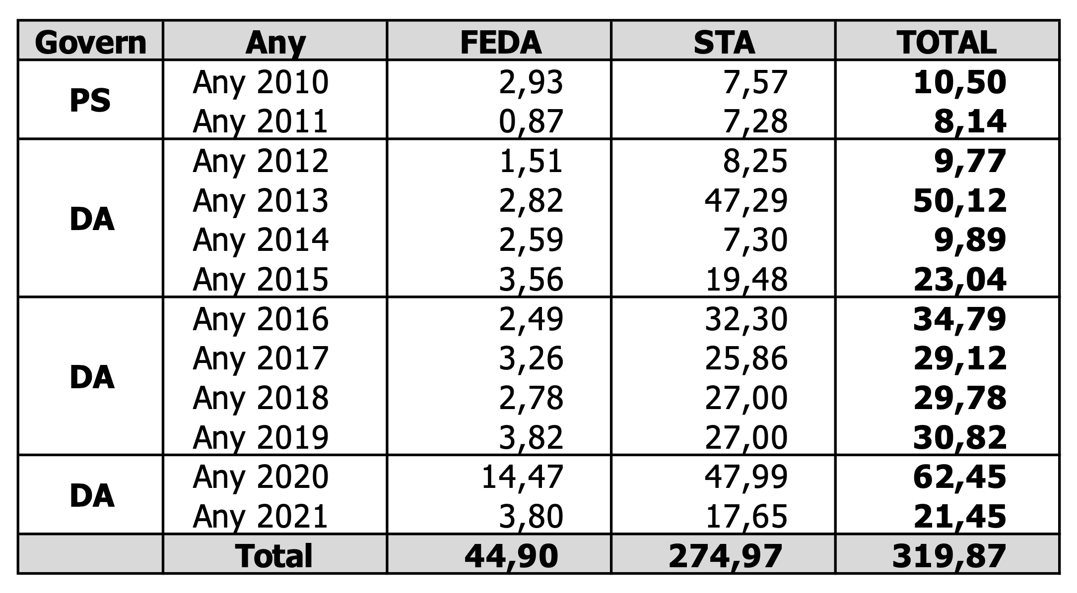 Ara per ara, l’exercici on el traspàs ha estat més important és el pandèmic 2020. En total, les operadores van passar al Govern de forma directa 62,45 milions d’euros. El segueix el 2013, amb poc més de 50 milions. Però aquest exercici citat no es pot pas passar per alt, atès que els dividends dels quals es va apropiar el Govern en relació a Andorra Telecom van ser pràcticament la mateixa quantitat: més de 47 milions. 47,2 milions d’euros el 2013 i 47,9 el 2020. El canvi, allò que marca la variació global, és la major aportació que va fer FEDA entre un any (2,82) i l’altre (14,47).
