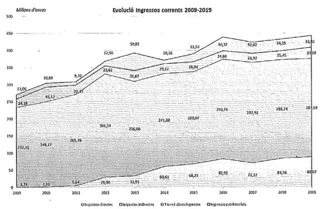 Així queda de manifest en l’anàlisi que es fa des del Govern aprofitant el document amb la liquidació pressupostària de l’exercici 2019. Un estudi que també remarca que la capacitat recaptatòria de l’executiu ha crescut de forma molt important en aquesta darrera dècada. Així, l’any 2009 els ingressos corrents de l’Estat van ser de 271 milions d’euros. El 2019, de 442. És a dir, un 63% més.