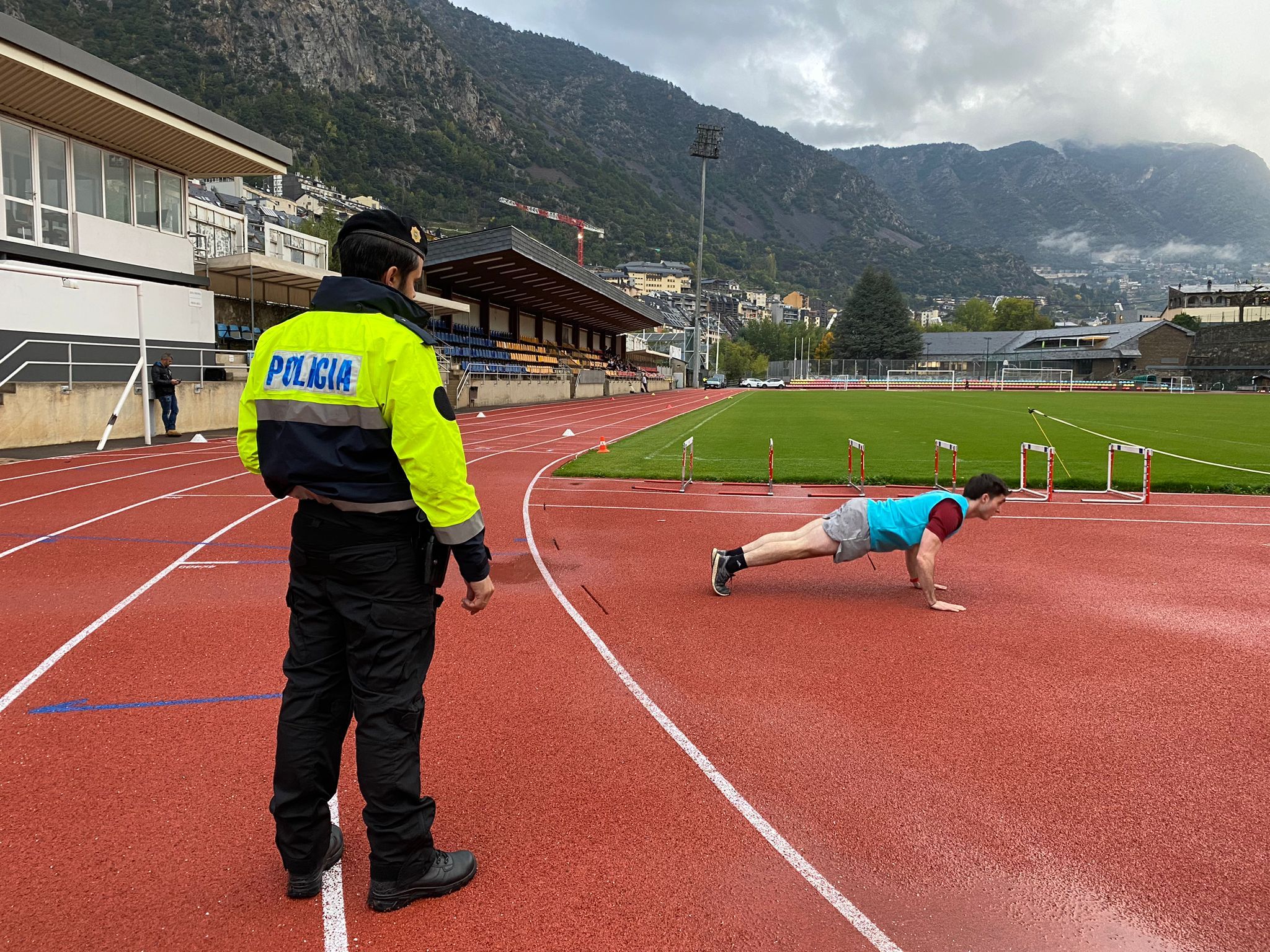 Els dinous candidats, dels quals quatre són dones, que afrontaven les proves es mostraven nerviosos però contents i optimistes. I amb ganes de treure’s de sobre la prova física, que com ha explicat el cap de formació del cos, el sergent Sergi Lechuga, consisteixen, aquest matí, en un circuit combinat de força i resistència. “Nou exercicis combinats com ara flexions, saltar tanques… i això tot anant donant voltes a l’estadi.” Després, per la tarda, hi haurà “una prova de resistència: durant 12 minuts s’han de donar el màxim nombre de voltes a l’estadi”. Aquest divendres hauran de córrer 1.500 metres per la muntanya amb un desnivell de 200 metres.