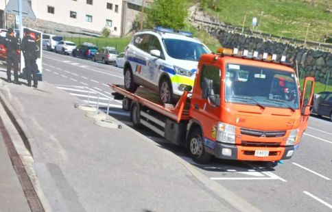 Estupefacció entre els vianants i conductors que han advertit aquest matí la presència damunt d’un camió grua d’un vehicle policial. No ha sofert cap accident ni res que se li assembli. Simplement, un dels Ford Kuga del cos ha acabat amb pana.