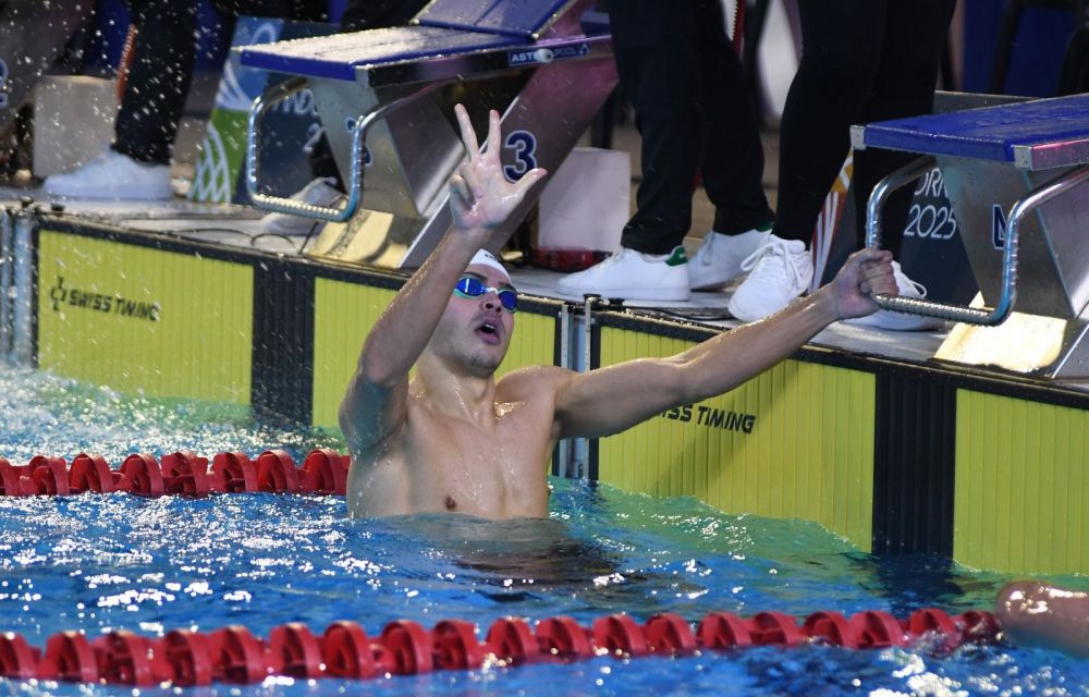 En una tarda on encara no havia caigut cap metall per a la delegació tricolor dins l’aigua, Teixeira ha tornat a vestir-se d’heroi després d’una remuntada èpica que ha fet vibrar a la grada. L’andorrà ha arrencat els primers cinquanta metres en cinquena posició, però ha estat només un miratge. Ha posat el ‘turbo’ a partir de la segona piscina per aconseguir una remuntada d’estrella per acabar superant al santmarinès Loris Bianchi, que havia liderat la cursa, en uns últims metres apassionants. L’altre representant andorrà, Biel Cuen, ha estat cinquè (4:05.61).