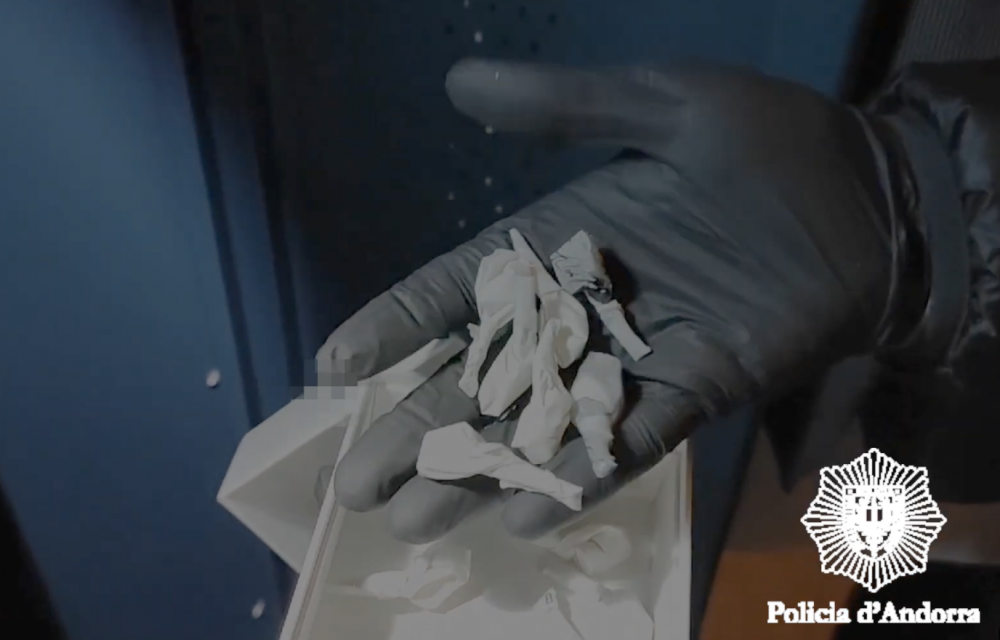 El primer detingut en ingressar a la presó, de 29 anys, va ser detingut a Andorra la Vella quan es dirigia al seu lloc de treball, en un cèntric carrer de la capital. Al damunt duia tres embolcalls amb un pes total de 3,30 grams de cocaïna i 170 euros en efectiu. Tot seguit, es va procedir a escorcollar el seu domicili, en aquest cas a Sant Julià, i, per ordre judicial, també el seu lloc de treball, on, a l’interior de la taquilla que tenia assignada, es van descobrir 12 embolcalls més d’un gram cadascun i de característiques similars als altres tres. Les 15 eren dosis preparades per a la venda.
