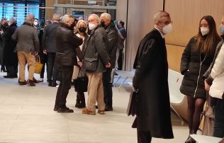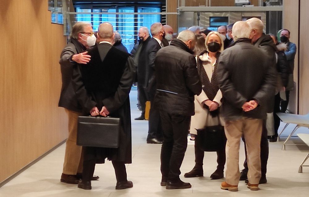 Una trentena d’advocats dins la sala -amb Jaume Bartumeu i Manuel Pujadas, entre altres- i d’altres a l’exterior per motius de limitació d’aforament degut a la pandèmia han fet costat al lletrat