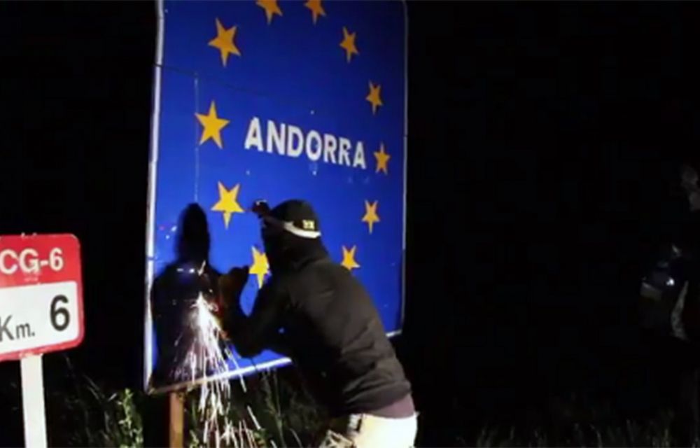 L'acció es va dur a terme al quilòmetre 6 de la carretera andorrana CG-6, que enllaça Sant Julià amb Os de Civís, just al punt fronterer. En el vídeo, gravat de nit al seu dia i difós al canal de Youtube de l’organització, s'hi veu com dues persones encaputxades connecten una serra radial a un generador i, tot seguit, tallen i retiren el rètol que indica l'entrada en territori andorrà. Posteriorment, en una altra gravació feta de dia, s'hi veia com un grup de joves, amb la cara descoberta, deixaven rel rètol retirat a la frontera hispanoandorrana davant del monument de la Porta dels Països Catalans, a Salses (Rosselló), juntament amb panells indicatius de França i Espanya.