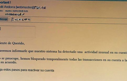 L’esmentada pràctica és tècnicament denominada com a ‘phishing’. De manera bastant barroera, persones desconegudes envien de forma massiva correus electrònics sovint molt mal fets avisant el destinatari que el seu compte ha estat bloquejat en haver-hi detectat alguna incidència. I que cal que faciliti les seves dades per poder reiniciar l’operativa. Els missatges, impersonals, són tot sovint traduccions molt deficients a l’espanyol d’altres idiomes. En aquesta ocasió, l’enviament ha estat molt massiu i en alguns casos l’adreça emissora era d’una coneguda empresa de serveis informàtics del Principat.