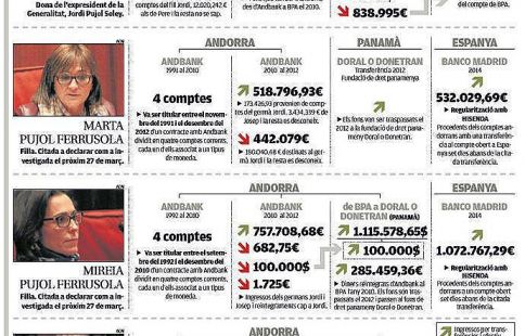 D’aquí que en una recent interlocutòria, De la Mata requereix a Andorra que faciliti les dades bancàries de set comptes -una de la matrona, Marta Ferrusola, i dues de cadascun de tres dels fills: Marta, Mireia i Pere. Tots quatre estan investigats per delicte fiscal i blanqueig en el marc d’una causa a partir de la qual el jutge de l’Audiència espanyola mira de descobrir l’origen de la fortuna familiar de l’expresident català.