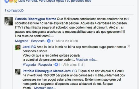 Via Facebook, Riberaygua manté un diàleg escrit amb l’exresponsable de la Unió Pro-turisme escaldenca i candidat de Liberals d’Andorra en la llista territorial dels comicis generals del 2015 Jordi Rubia. La consellera general explica que el que “si és cert és que el comú ha invertit uns 150.000 euros per posar al dia les carrosses i malauradament dues no han pogut estar a les normes. Evidentment, sap greu pels nens però la seguretat passa al davant de tot”.