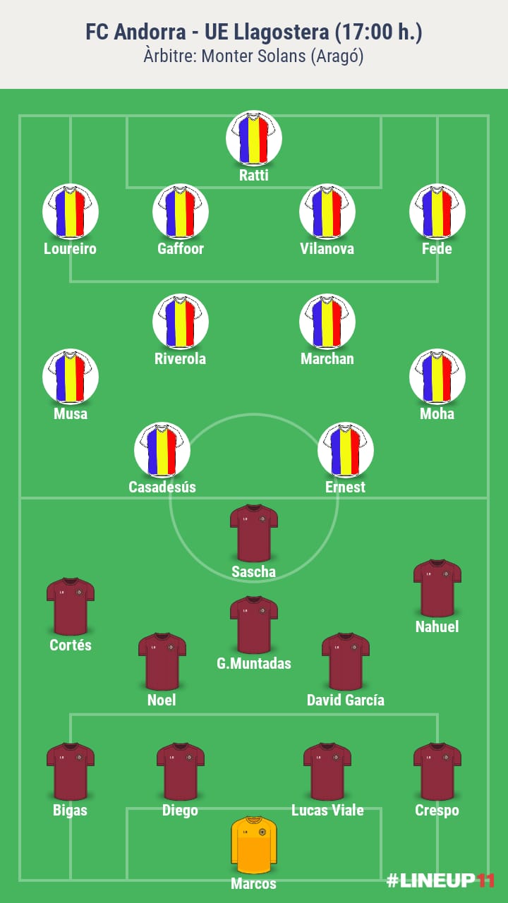UE Llagostera: Santaló (ps), Adri Lledó, Magallán, Maynau, Pol Gómez, Kuku i Yeray.