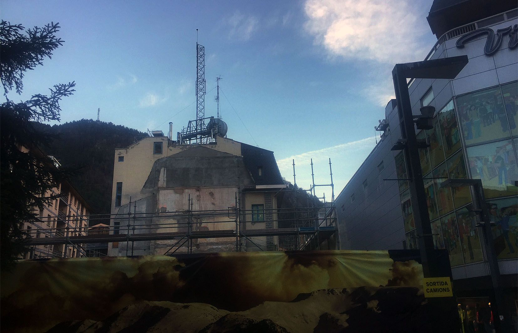 L’històric edifici comercial del Servei de Telecomunicacions d’Andorra (els darrers anys Andorra Telecom) a l’avinguda Meritxell ja ha passat a millor vida. De fet, ja fa dies que es treballava en el desmuntatge de l’immoble amb una tècnica especial per minimitzar la contaminació acústica i la qüestió de pols. Ara, una vegada s’han retirat les lones amb que s’havia cobert la construcció, justament, per procedir a enderrocar-la, ja es pot observar com cada vegada més el terreny que hauria d’acollir el controvertit ‘The Cloud’ va quedant més alliberat.