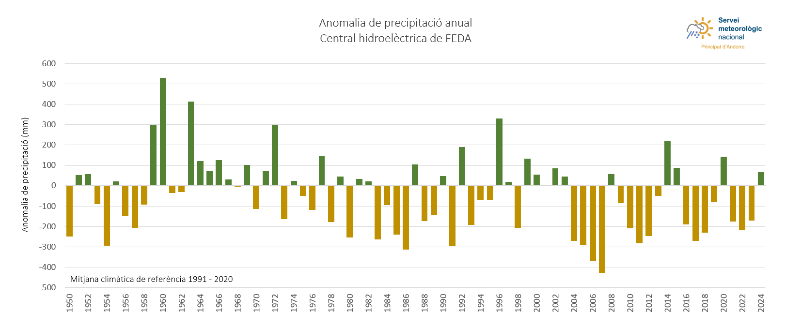 Com s’ha dit, en general el 2024 ha estat un any “normal” pel que fa a les precipitacions, tot i que en algunes zones ha estat plujós, és a dir, que s’han detectat registres per sobre de la mitjana. Aquesta situació suposa un canvi de tendència respecte als 3 anys anteriors, que van ser deficitaris.