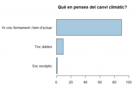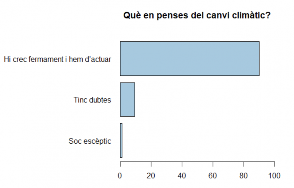 Segons l’enquesta publicada, el 90% dels entrevistats creu en el canvi climàtic derivat de l’activitat humana i en la necessitat d’una actuació immediata per revertir la situació. Respecte als efectes derivats d’aquesta problemàtica, el 66% pensa que disminuirà el cabal dels rius, el 76% que augmentarà el risc d’inundacions, el 91% que s’incrementarà l’altitud de la cota de neu i el 56% que la qualitat de l’aigua empitjorarà.