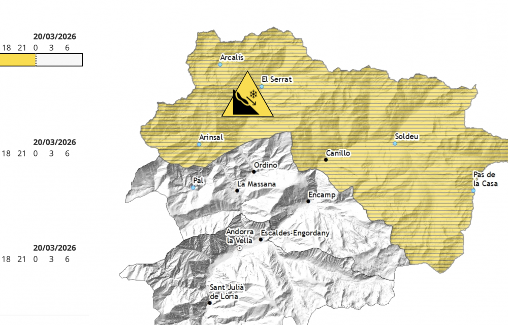 De cara a demà dijous, jornada en què es mantindrà l’avís groc per allaus, el vent del nord-est –indica l’organisme– deixarà nuvolositat amb “algunes precipitacions febles”, sobretot al matí, en què també es viurà un descens de les temperatures. Al vespre, el cel tornar a destapar-se.