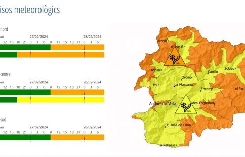 Vista aquesta possibilitat, s’han activat avisos per temps violent. De fet, tot el país està en alerta, groga en el cas del fons de vall i taronja a les zones altes, en aquests dos casos pel vent i neu. Al sud, l’avís, groc, és bàsicament pel vent.