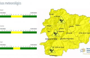 En funció de la cota, a més, seran en forma de neu. Durant gran part de l’episodi, es calcula que se situarà a uns 1.700 metres, però durant el dissabte al matí podria caure fins als mil metres. Per això, s’ha decidit activar per a aquelles hores l’avís groc. Es calcula que pot caure fins a “cinc centímetres efímers” als fons de les valls.