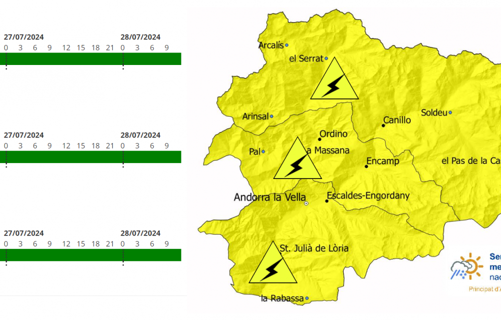 El servei meteorològic d’Andorra ha anunciat que les tempestes d'ahir van deixar els majors registres al nord i est del país. Aquesta tarda se n’esperen de noves, tot i que probablement més d'hora, però igualment amb un gradient nord-sud remarcable.