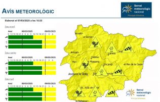 El servei de Meteo ha informat que la pertorbació Jana marcarà el temps dels pròxims dies, amb un flux de sud que portarà precipitacions generalitzades al vessant sud del Pirineu. Dissabte a la tarda i a la nit, el vent s’intensificarà, i la matinada de diumenge les precipitacions es tornaran molt intenses. La cota de neu, inicialment situada als 2.000 metres, baixarà fins als 1.400 metres. Davant d’aquestes condicions, s’ha emès un avís groc per vent fort i acumulació de precipitació, així com per neu a partir dels 1.400 metres.