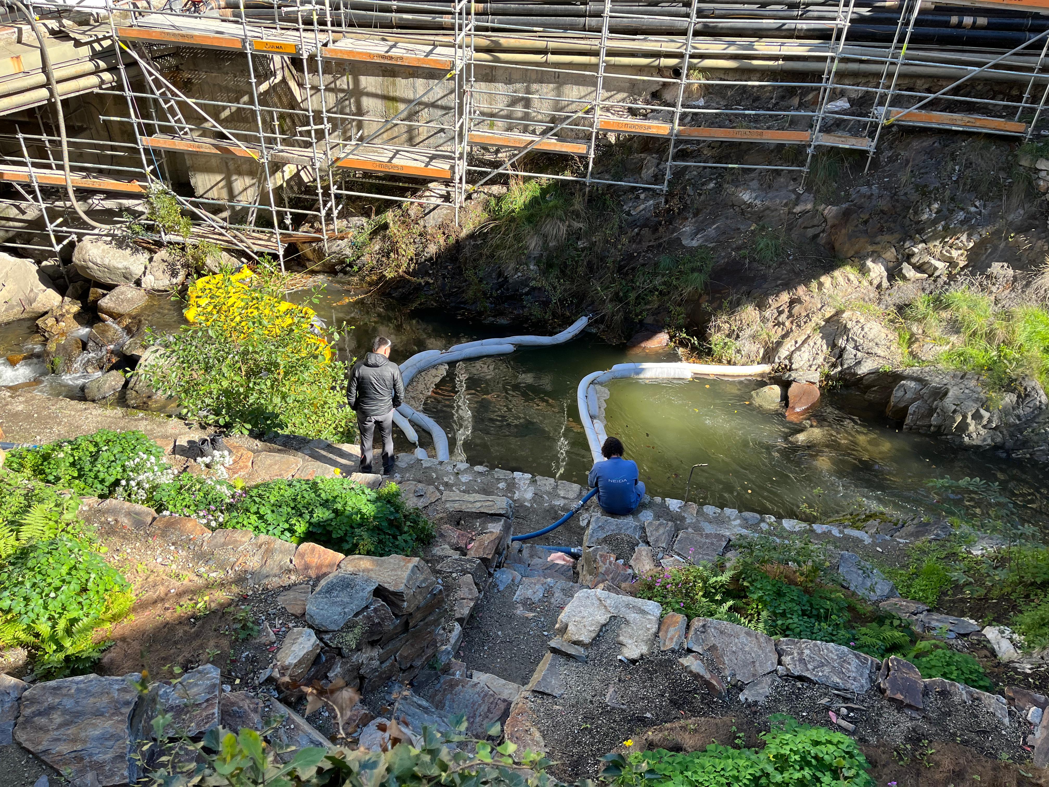 Fonts del departament de Medi Ambient han assegurat que les barreres situades en aquella zona de la part alta d’Escaldes “han funcionat”, però també és evident que “hi ha una part d’hidrocarbur que s’escapa de la contenció”. En conseqüència, s’extreu tanta aigua com es pot en aquella zona i es mira de netejar fora d’aquell punt alhora que operaris de l’empresa contractada van mirant d’eliminar si poden sobre lloc allò més notable. L’operació no és gens senzilla atès que encara no s’ha trobat el punt exacte pel qual l’hidrocarbur apareix al riu. I el degoteig hi continua sent tot i que la intensitat òbviament cada cop és menor.