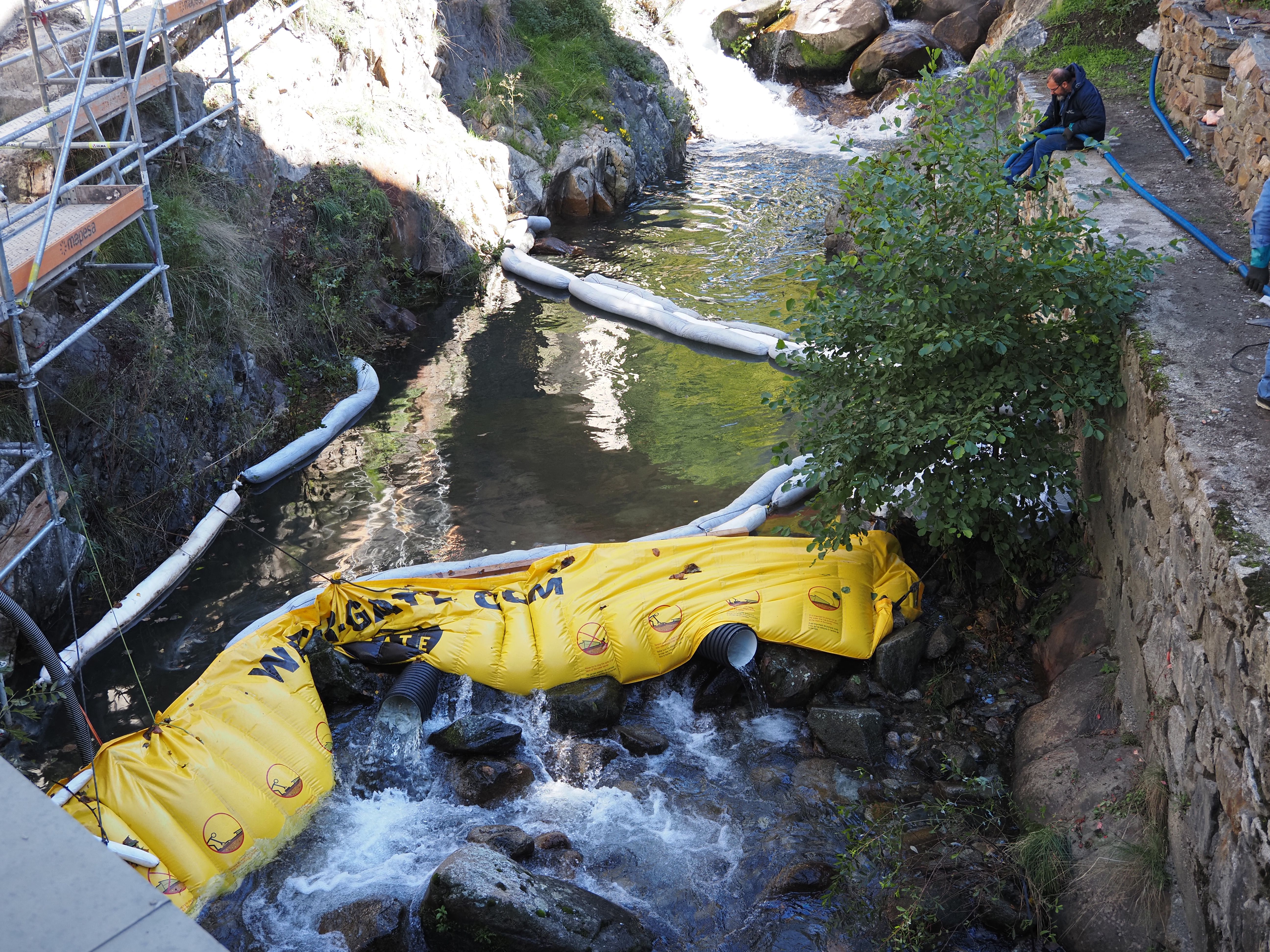 Al pont de la Tosca s’hi manté activitat frenètica. La situació “ha millorat” respecte a ahir, “també a nivell d’olors”, es reconeix des del ministeri de Medi Ambient, però la feina no està ni molt menys acabada. Els sistemes de contenció i absorció que es van instal·lar fa dos dies, en detectar-se el vessament, continuen a lloc, tant els xurros com l’anomenat ‘watergate’, i estan fent “la seva funció correctament”. Ara bé, no ho frenen tot. També dos camions de les dues empreses privades especialitzades en la matèria continuen actuant a la zona i ho seguiran fent, alhora que es compta amb una màquina que permet segregar l’aigua de l’hidrocarbur de manera contínua. Perquè se’n facin a la idea, una mena de depuradora que recull l’aigua amb carburant, la passa per un cilindre que permet netejar-la de gasoil i la torna a llançar al riu. El separador d'hidrocarburs s’ha situat a la zona de la placeta del Madriu, per sota de la carretera, i d’aquesta manera, l’aigua que arriba al Valira d’Orient és el més neta possible.