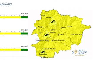 És un fenomen que es podria donar, però que en principi s’espera en forma de precipitacions més intenses al llarg de la nit. Les previsions de gruixos de neu nova són de 10 centímetres a 2.500 metres i de tres a 2.000.