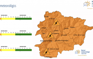 La previsió és que es registrin al Principat fortes ràfegues de vent durant els moments de màxima intensitat tempestuosa, així com pedra o calamarsa. Aquest episodi meteorològic serà provocat per un front provinent de l’exhuracà Erin, que portarà l’arribada d’aire fred en altura aquest vespre i en conseqüència tempestes. A partir de la mitjanit, la previsió indica que les tempestes que es podran registrar seran de menor intensitat i, per tant, l’avís passarà a ser groc.