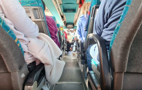Per algunes de les persones refugiades somriure no és fàcil, sobretot en els primers moments, en iniciar el trajecte cap a Andorra, pel dolor i el trauma de l’experiència viscuda. Tot i que a mesura que s’allunyen d’Ucraïna, es relaxen. D’altres, tenen una actitud alegre tot i que interiorment estan patint. És el cas d’una mare que ha marxat de Kíiv amb el seu fill. En una de les parades del viatge, el petit parla amb el pare que està “lluitant pel país”, comenta la mare que llavors modifica l’expressió facial. Prefereix canviar de tema de conversa. Explica que li agrada esquiar i que possiblement s’aventurarà a practicar aquest esport als Pirineus.