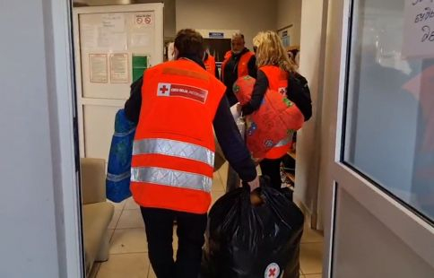 La Creu Roja andorrana ha deixat part del material d’ajuda humanitària al centre: mantes, matalassos i productes per als infants. I també ha regalat un os de peluix per a cada nen i nena. D'entrada només s'hi havien de deixar els peluixos. Però l'hospitalitat del moment viscut ha fet canviar una mica els plans. Cap dels membres del comboi a excepció de la traductora parla ucraïnès o polonès, fet que dificultat l’entesa. Amb tot, hi ha hagut comunicació a través del somriure i també del joc. La responsable de l'expedició, Anna Arias, ha explicat que l'entrega d'una part del material ha estat un gest de recolzament per ells, i què s'ha copsat amb les mirades de cadascuna de les persones que rebien el material. Tot i assenyalar, que la prioritat és poder fer arribar el material a dins del territori ucraïnès atès que és més difícil cobrir les necessitats bàsiques.