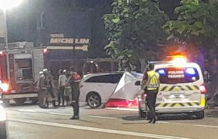 Ambulància, el cotxe implicat i el cadàver cobert.