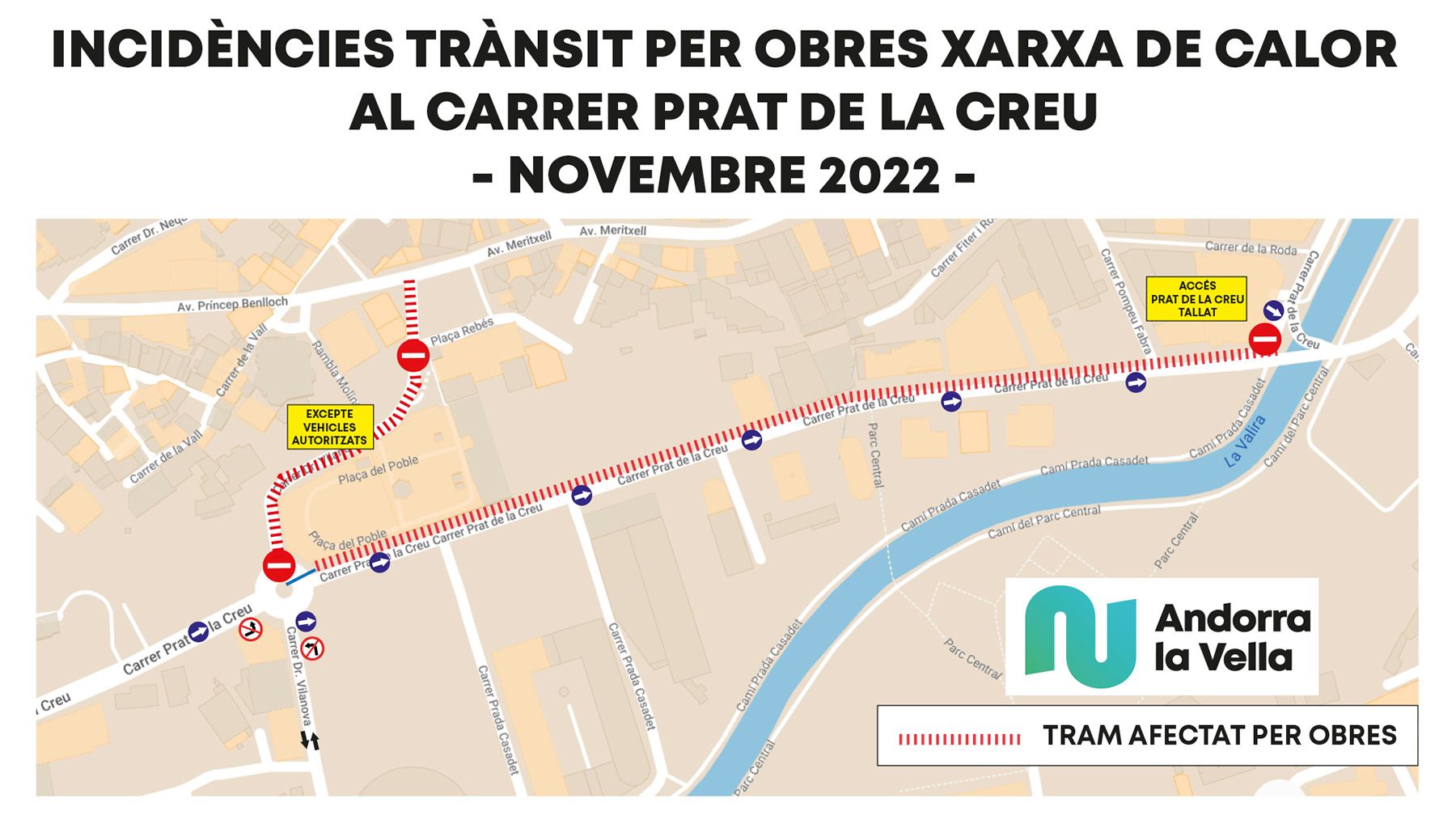 L’alternativa que planteja el comú és per l’avinguda Meritxell. La cònsol major de la capital, Conxita Marsol, ha demanat “una mica més de paciència” perquè l’actuació, al final, “valdrà la pena”. Els talls a Prat de la Creu comportaran també canvis en els serveis de bus -parroquial i estatal (s’anul·len les parades de Parc Central 2 i de la zona de la Roda, davant de la Cambra de Comerç, i passen les dues a la zona de la Rotonda)- i també al transport escolar. Els pares dels alumnes afectats per aquestes modificacions ja han estat informats. La parada de la zona de la Poste passa a ser l’epicentre del bus escolar.