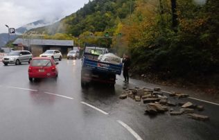 La càrrega del camió, petit, en qüestió no deuria estar ben reposada en la caixa del vehicle, s’ha acabat movent i part d’ella ha acabat a la calçada. Es tracta de residu rocallós. Operaris del servei de manteniment de carreteres o fins i tot equips dels bombers, per proximitat, s’hauran d’apropar fins a la zona, en el punt rodó conegut amb el nom de l’establiment de menjar ràpid i entrepaneria que hi ha en aquell indret, per netejar la via i que es pugui refer la normalitat.