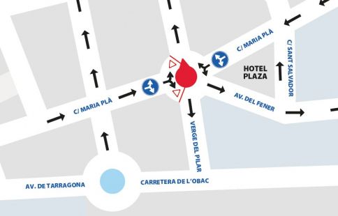 Així, des del comú s’ha explicat que, a partir de dimecres, pel que fa a la rotonda, s’anul·la el gir habitual dels vehicles provinents del carrer Maria Pla. Justament, això és a causa dels canvis d’itinerari del servei d’autobús. I és que les obres obliguen a desviar el servei de transport públic a través del carrer Maria Pla i, per tant, és convenient que quedi fora d’ús el punt rodó.