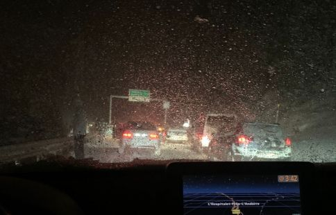 Admet que hi havia “neu i vent” però lamenta que “a la duana ningú ens va explicar res ni ens va controlar per si dúiem equipaments”. I, un cop superades les instal·lacions frontereres, tot estava aturat. Eren més o menys dos quarts de vuit i tota la filera de cotxes estaven aturats. “Cada deu o vint minuts avançàvem tot just deu metres”, apunta.