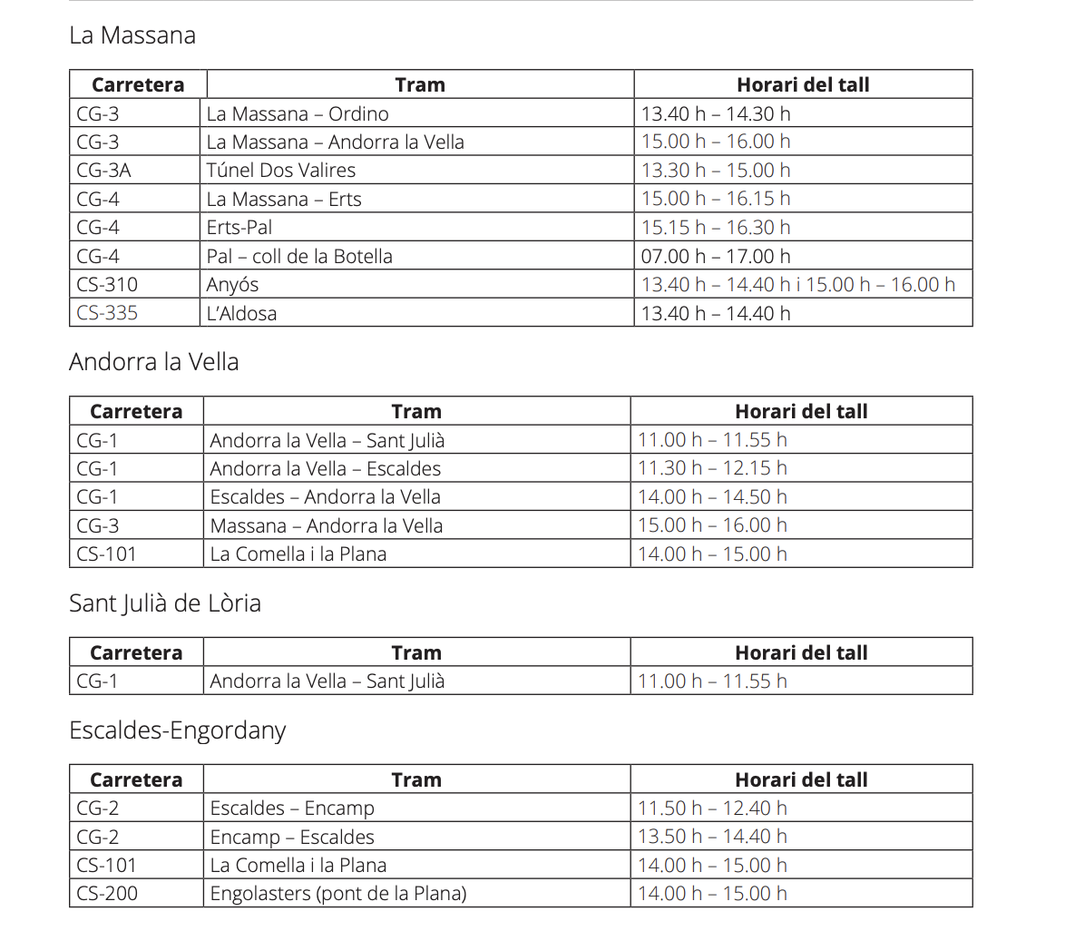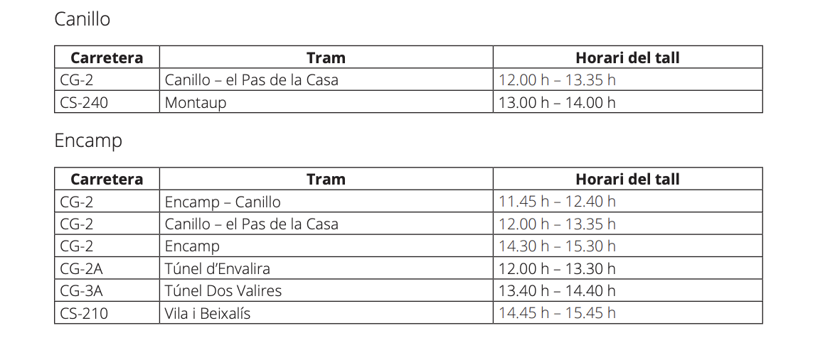 D’altra banda, el BOPA també ha publicat que des del dijous 10 fins al diumenge 13 de juliol, la circulació de vehicles quedarà interrompuda a la CG-4, des de la sortida del poble de Pal en sentit nord, fins al port de Cabús, entre les 7 del matí i les 19 hores. S’aconsella a totes les persones que els dies 10, 11, 12 i 13 de juliol vulguin desplaçar-se per veure l’esdeveniment que tinguin en compte les afectacions viàries esmentades i que facin ús del transport públic, línies nacionals (L5 i L6) i línies de la parròquia de la Massana, dels autobusos que l’organització dels Campionats del món posa a disposició del públic i del telecabina de la Massana.