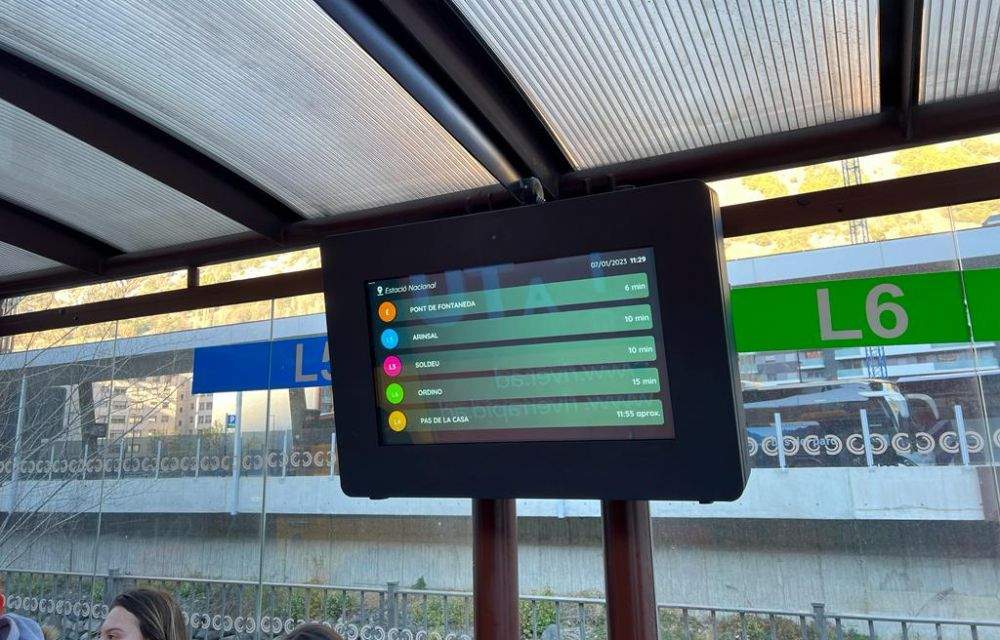 La primera d’aquestes pantalles s’ha pogut veure a una de les parades de la línia nacional de l’Estació d’Autobusos. I es troba en funcionament, indicant els clípols que haurien d’arribar i quin és el temps d’espera. És a dir, fent el que li correspon i la tasca per a la qual s’ha instal·lat. Va estar el ministre d’Economia, Jordi Gallardo, qui va anunciar aquesta mesura el passat novembre, amb el paquet de mesures de millora per a les freqüències i els recorreguts complementaris.