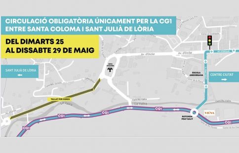Mobilitat ha recordat que, tots aquells vehicles que es dirigeixin des del centre de Santa Coloma fins a Sant Julià, ho podran fer únicament per la CG1. Per fer-ho possible, s’ha habilitat un gir a l’esquerra, regulat per un semàfor, que obligarà a incorporar-se al carrer Prat Salit, fins a arribar a la rotonda del restaurant Viena.