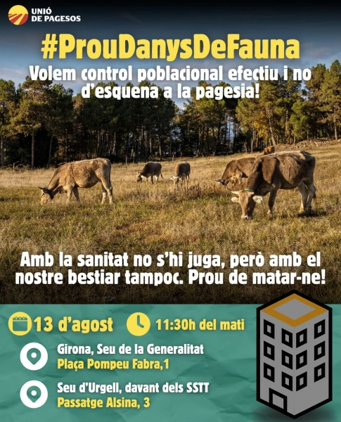 Segons ha informat el sindicat en un comunicat, el motiu de la mobilització és per exigir a l’administració una gestió efectiva i justa dels danys de fauna a l’agricultura i a la ramaderia, un pla de control poblacional complet i indemnitzacions actualitzades per a la pagesia afectada. El sindicat també reclama una actuació urgent i transparent davant el problema específic de la tuberculosi bovina, tant en el bestiar com en la fauna salvatge.