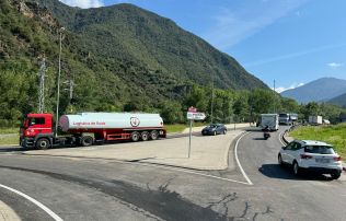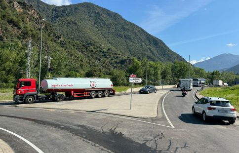 Els vehicles a la rotonda d'Arcavell en direcció a la frontera del riu Runer.
