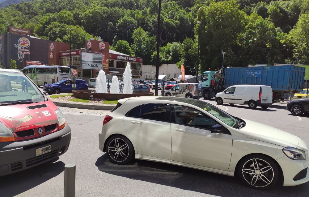 Al migdia, els problemes s'han concentrat en el tram entre Sant Julià de Lòria i Andorra la Vella. Les retencions han provocat l'enuig de molts conductors i d'usuaris del transport públic que esperaven molta estona a les parades. La previsió és que aquest cap de setmana no hi hagi tants problemes tot i la coincidència de diversos esdeveniments com l'Andorra Mountain Music, el Multisport i la previsible arribada de visitants.